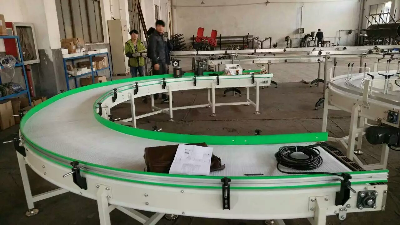 鏈板輸送機以標準頂板鏈為承載面,由馬達減速機為動力傳動,運行在專用導軌中。昆山璧發自動化可按客戶需求定制鏈板輸送機,廣泛應用于食品、煙草、飲料、電器等行業。電話18114618219
